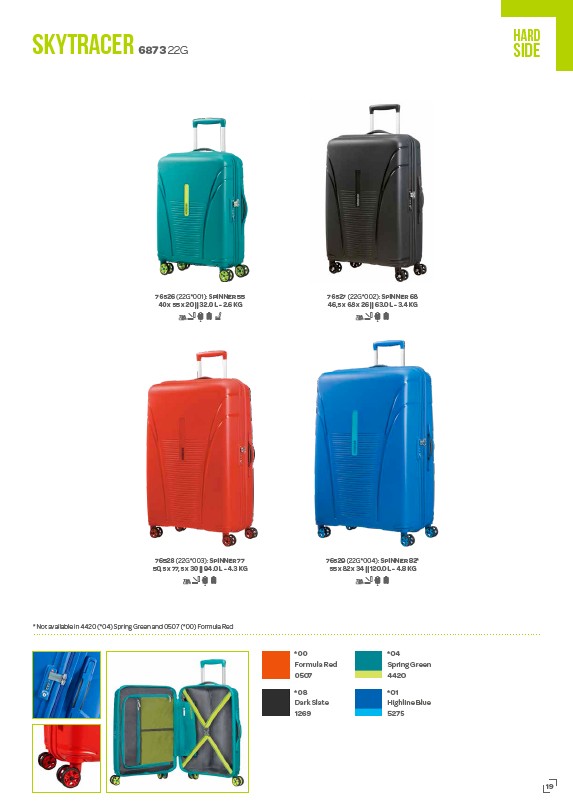 * Not available in 4420 (*04) Spring Green and 0507 (*00) Formula Red