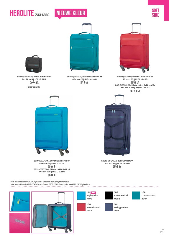 * Niet beschikbaar in 4219 (*04) Cactus Green en 4872 (*11) Mighty Blue
